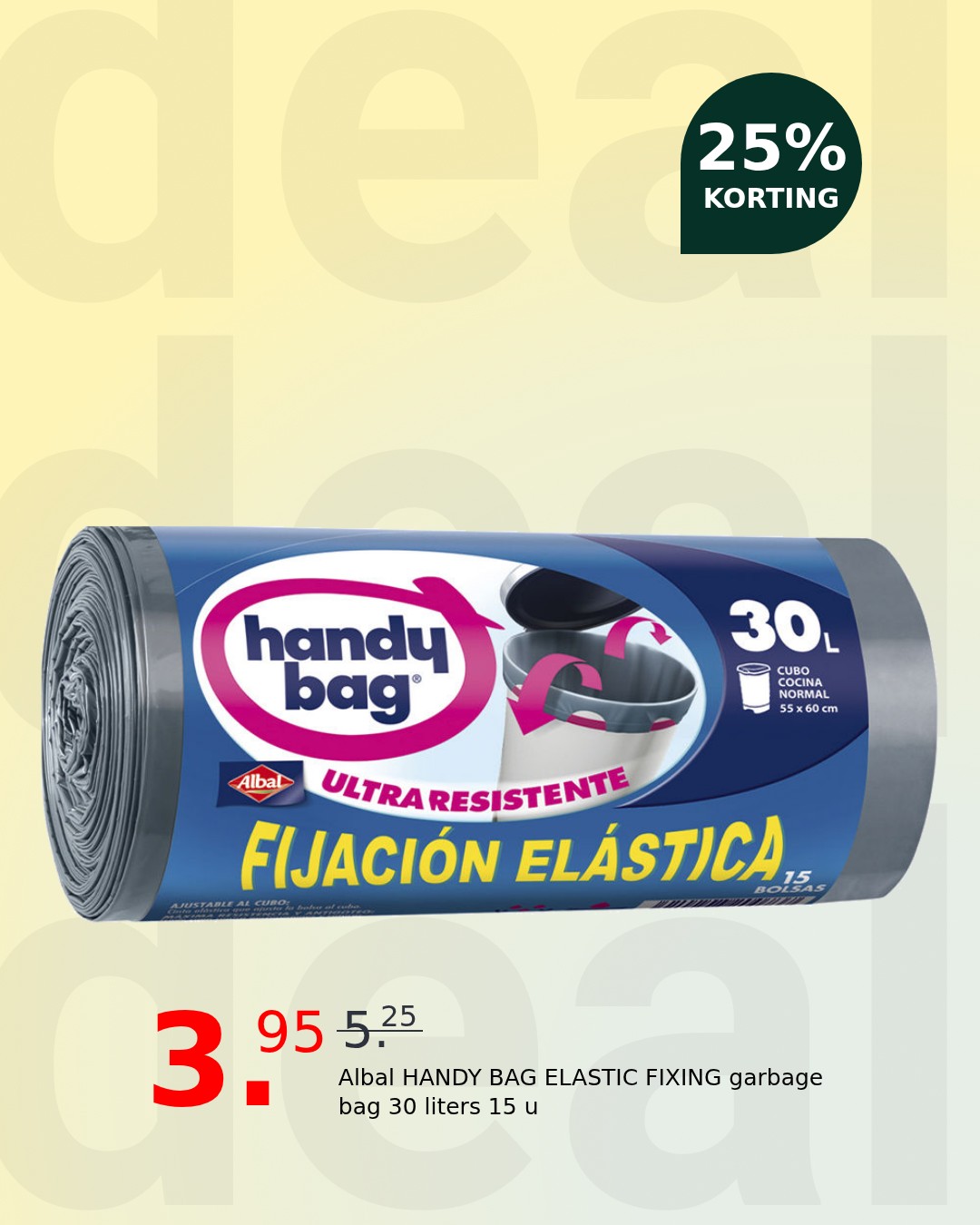 Got questions about the Albal HANDY BAG ELASTIC FIXING garbage bag 30 liters 15 u?