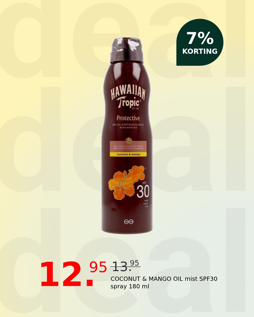Escape to paradise with Hawaiian Tropic’s Coconut & Mango Oil Mist SPF30 spray. This luxurious sunscreen delivers essential sun protection while enveloping your skin in a tropical fragrance, leaving you feeling refreshed and revitalized. Enjoy the sun with confidence, knowing your skin is shielded from harmful rays.