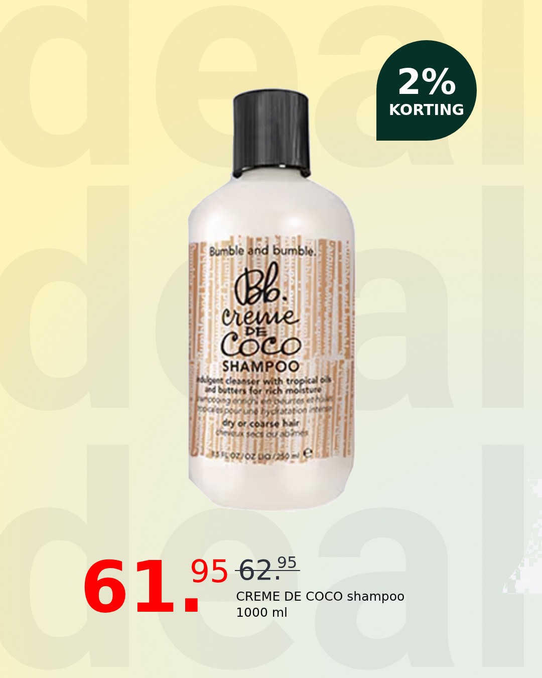 Indulge your hair with the luxurious richness of Bumble and bumble’s Creme de Coco Shampoo. This generous 1000ml bottle is your ticket to deeply nourished, sumptuously soft, and incredibly manageable locks, transforming your daily wash into a spa-like experience.