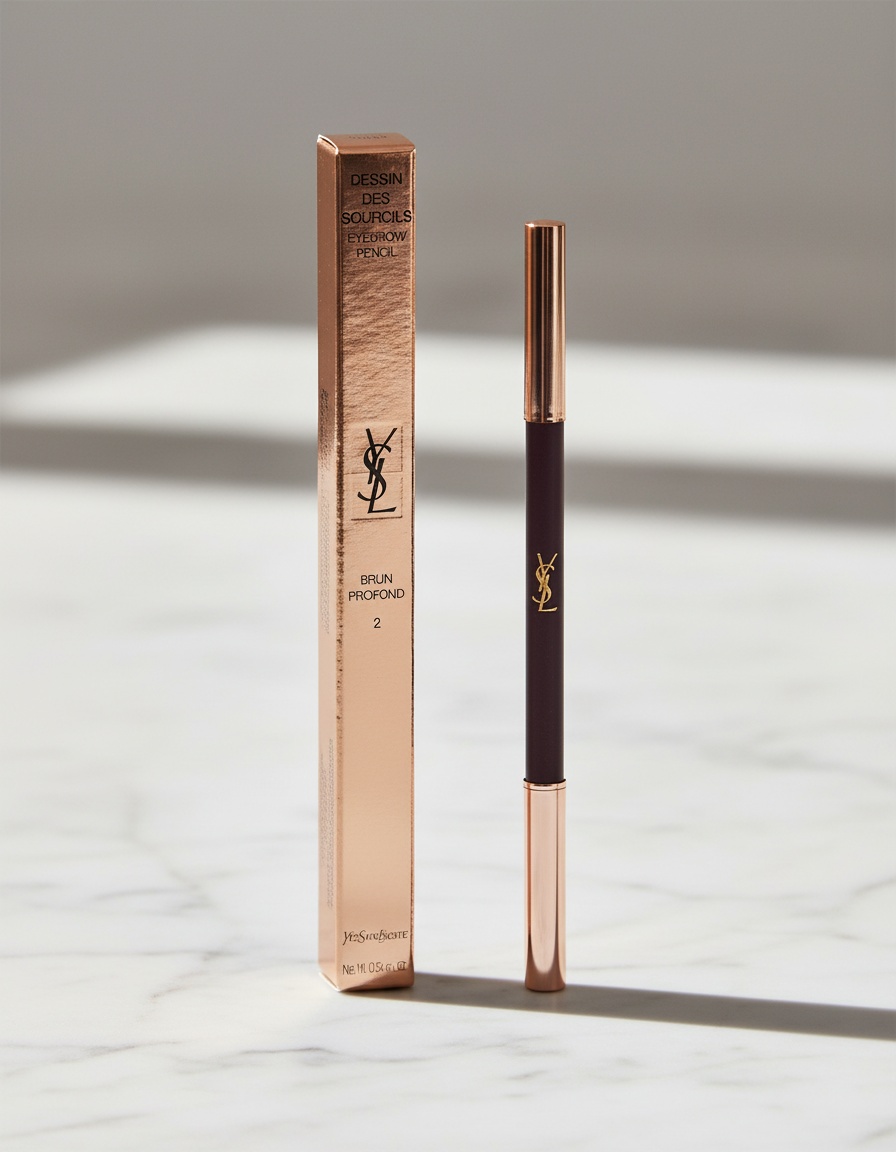 Yves Saint Laurent presents the DESSIN DES SOURCILS Eyebrow Pencil, an essential tool for shaping, filling, and enhancing your brows. This dual-ended pencil features a built-in brush designed for precise application and grooming. With its smooth, creamy formula, it effortlessly glides on the skin for a seamless, natural look. The integrated spiral brush allows for easy styling, helping to nourish the brows and soften any harsh lines. After application, your eyebrows will appear beautifully sculpted, well-defined, and noticeably fuller. Dermatologically tested, this product is safe for those who wear contact lenses.