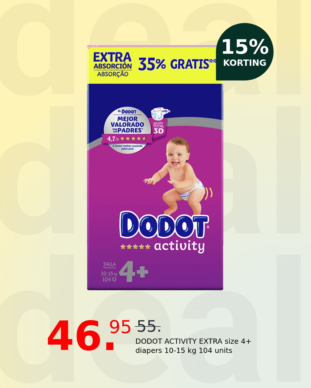 Got questions about the DODOT ACTIVITY EXTRA size 4+ diapers 10-15 kg 104 units?