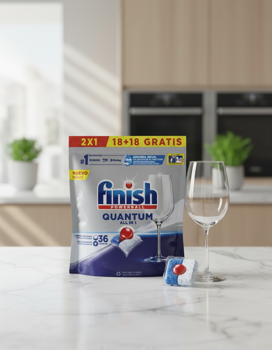 Discover the ultimate power of FINISH POWERBALL QUANTUM dishwasher tablets, designed for deep cleaning and a brilliant shine. Each pack contains 36 tablets, enough for weeks of worry-free dishwashing. The revolutionary three-chamber technology ensures a complete attack on all food residue, even the most stubborn baked-on residue on your pots, pans, plates, and glasses. Pre-cleaning is no longer necessary thanks to the powerful formula that penetrates deep into stains. The unique design ensures optimal distribution of cleaning agents, resulting in thorough and efficient cleaning right into the smallest corners.