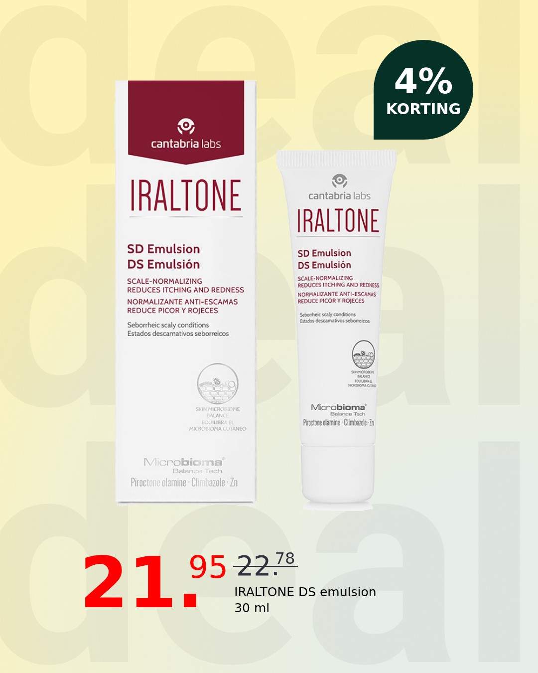 Discover the ultimate solution for a healthy, revitalized scalp with IRALTONE DS emulsion. This advanced formula works to soothe irritation and combat flaking, leaving your scalp feeling comfortable and balanced. Experience a renewed sense of well-being and confidence as this powerful emulsion restores your scalp’s natural harmony.