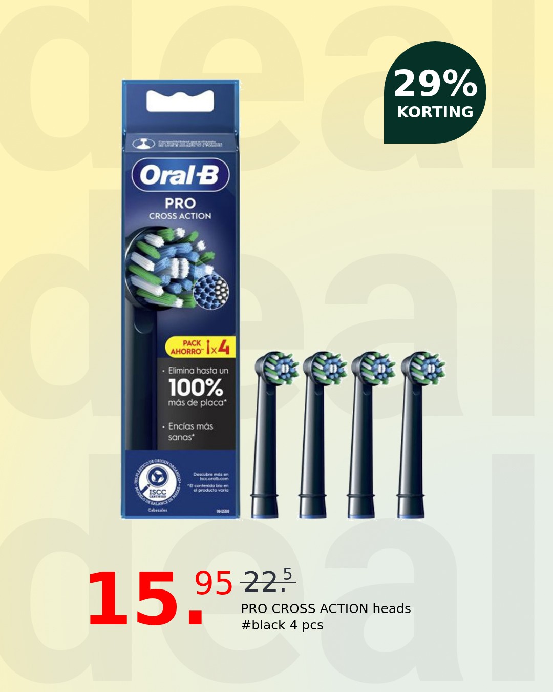 Elevate your oral hygiene routine with the Oral-B PRO CROSS ACTION heads in a sleek, sophisticated black. Designed to deliver a superior clean, these brush heads are your secret weapon against plaque and for achieving that dentist-fresh feeling every single day. Experience the difference a truly effective clean can make.