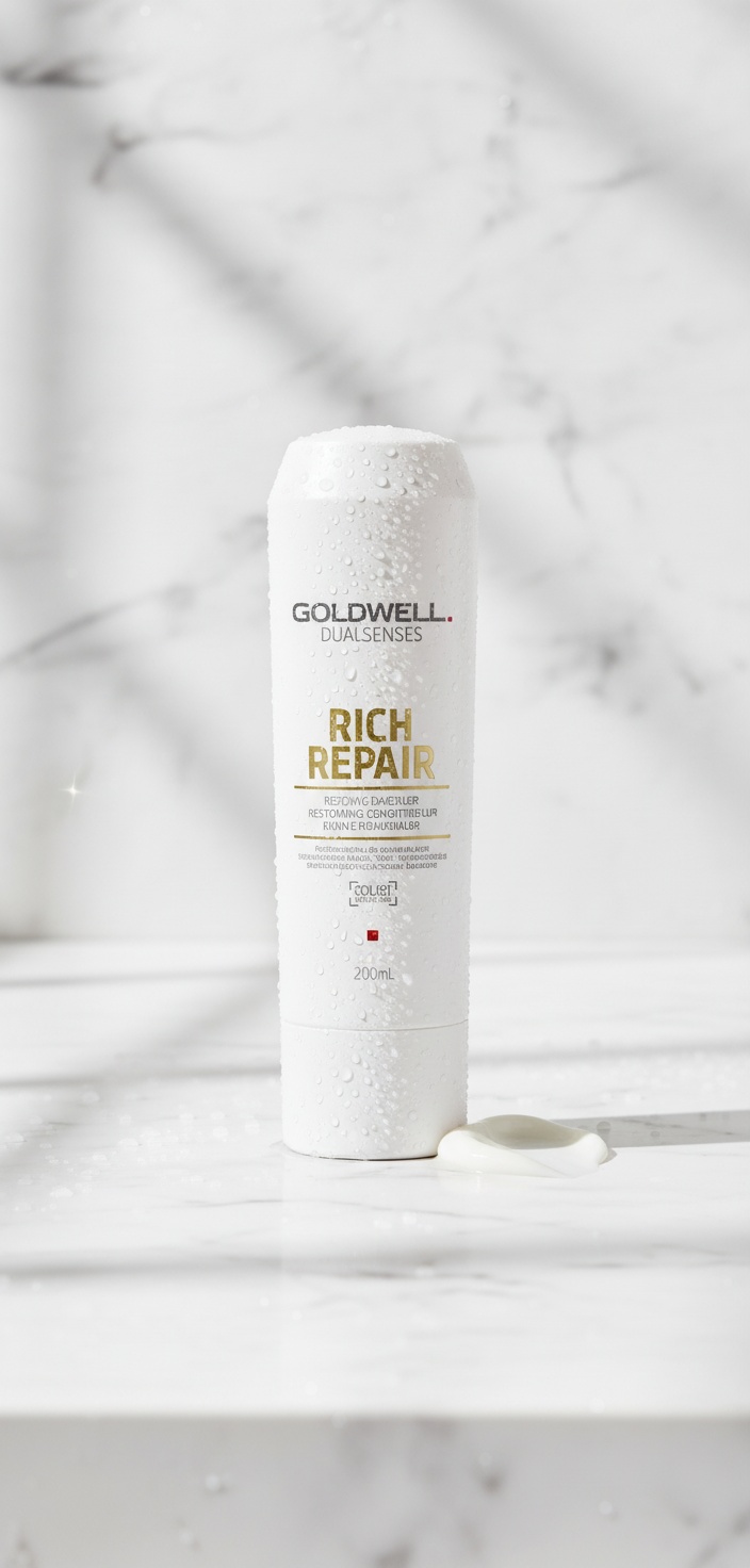 Goldwell RICH REPAIR Repairing Conditioner 200 ml Deep Nourishment for Damaged Hair Give your dry and damaged hair the ultimate care it deserves with Goldwell RICH REPAIR repairing conditioner. This 200 ml bottle is filled with a powerful formula specifically designed to repair and strengthen the hair structure. Say goodbye to dry, brittle, and frizzy hair and hello to shiny, healthy, and easy-to-style hair. Instantly Improves Hair Quality Experience the benefits of this rich conditioner right away. The formula penetrates deep into the hair fiber, intensively nourishing and smoothing it. Your hair instantly feels softer, silkier, and easier to comb. The improvement in manageability is noticeable; finally, no more struggling with tangles and knots. The conditioner significantly minimizes hair breakage, contributing to longer, healthier hair strands. Healthy Hair from Root to End The Goldwell RICH REPAIR conditioner is more than just a conditioner; it’s a repair treatment for your hair. The unique formula repairs the damaged hair structure, strengthens the hair fiber from within and protects against future damage. This results in shiny, strong hair that looks healthy and full, from root to end. Benefits That Speak for Life The Goldwell RICH REPAIR conditioner offers numerous benefits, including: instantly improved combability and shine, minimized hair breakage, healthy, repaired hair fibers and easier styling. It leaves the hair smooth and silky, making tangles and knots a thing of the past. It is suitable for daily use and helps revitalize damaged hair. The 200ml bottle provides enough conditioner for extended use, but you can expand to other sizes within the Goldwell RICH REPAIR line depending on your needs. Use in conjunction with the RICH REPAIR shampoo for optimal results.