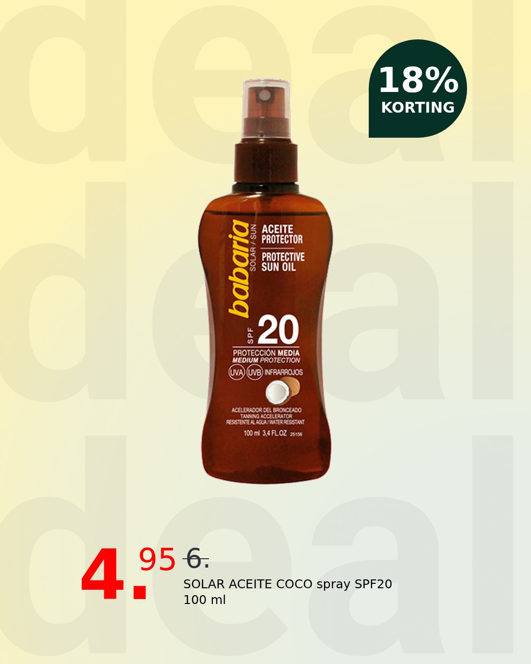Embrace the sun with confidence and radiant skin thanks to Babaria’s Solar Aceite Coco spray. This luxurious, lightweight formula provides essential SPF20 protection, allowing you to enjoy the outdoors while safeguarding your skin from harmful UV rays. Experience the tropical scent of coconut as you achieve a beautiful, sun-kissed glow.