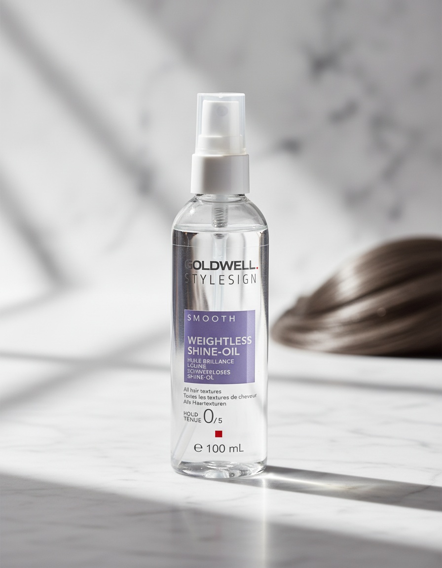 Goldwell Stylesign Smooth Weightless Shine-Oil 100ml A silky shine for your hair Discover Goldwell Stylesign Smooth Weightless Shine-Oil, a revolutionary hair care oil that transforms your hair into a shiny, silky dream. This 100ml bottle offers a luxurious experience that not only conditions your hair but also maximizes its look. The oil is specially formulated to be weightless, meaning your hair won’t feel greasy or heavy, despite the intense hydration and shine. 72-hour radiant shine Experience shine that lasts up to 72 hours. No more worrying about frizz or a dull appearance. Goldwell Stylesign Smooth Weightless Shine-Oil makes your hair shine, whether you’ve just come from the salon or haven’t washed it in a day or two. The unique formula ensures long-lasting, intense shine without weighing your hair down.