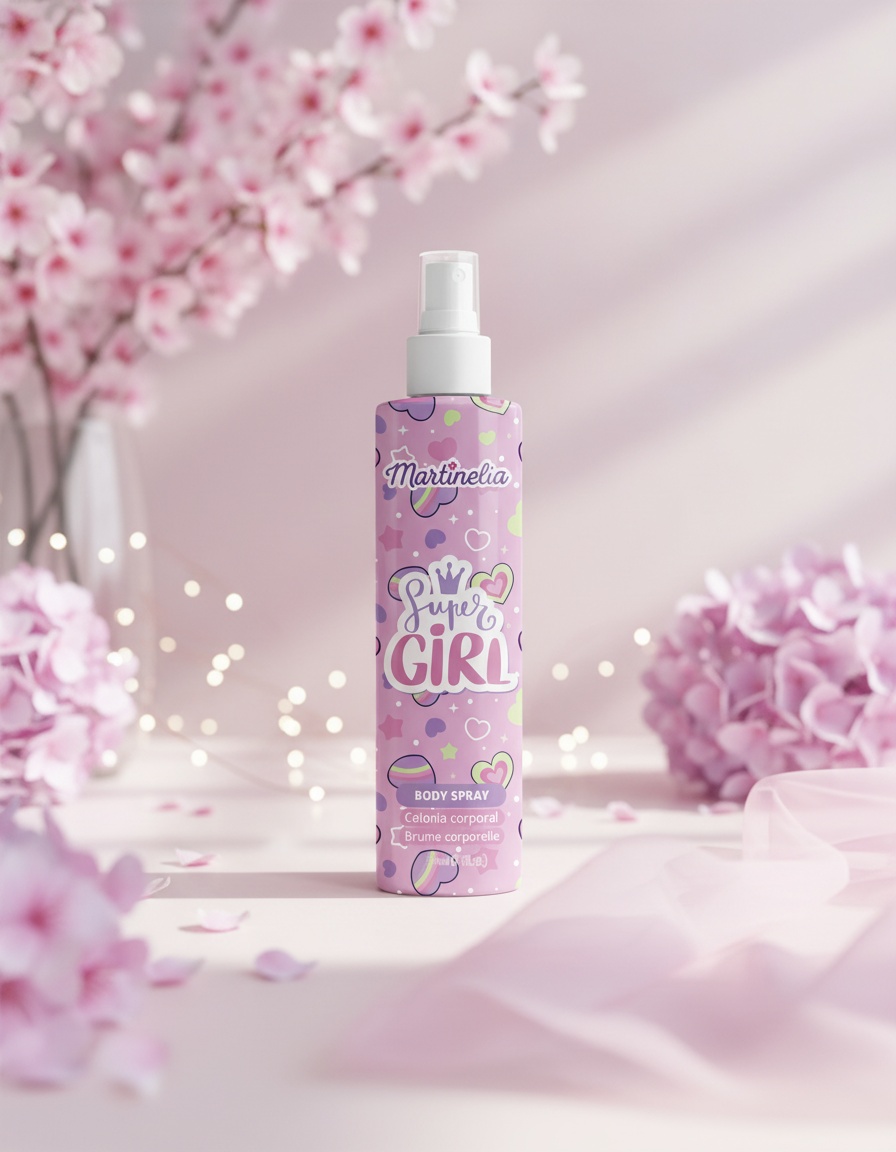 Spray the Martinelia SUPER GIRL body cologne spray on the desired area, such as the wrists, neck, or throat. Avoid contact with the eyes. Hold the spray at arm’s length. For a long-lasting result, it is recommended to reapply the body mist regularly.