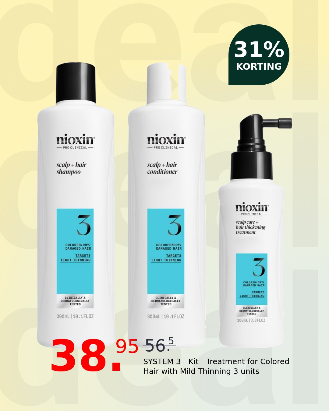 Revitalize your color-treated hair with the Nioxin System 3 Kit, a powerful three-step treatment specifically designed for those experiencing mild thinning. This expertly formulated system works to cleanse, optimize, and treat your hair and scalp, promoting a fuller, more vibrant look while preserving your beautiful color.