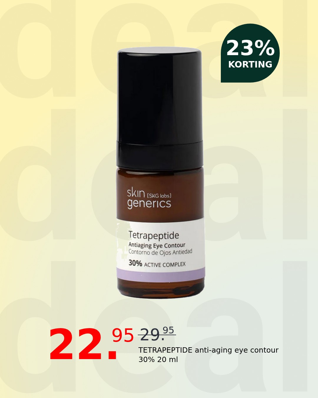 Rediscover youthful radiance with Skin Generics TETRAPEPTIDE Anti-Aging Eye Contour. This potent 20ml serum is expertly formulated to visibly reduce the appearance of fine lines and wrinkles, delivering a smoother, firmer, and more revitalized look around your delicate eye area. Experience a transformative effect that combats the signs of aging with every application.