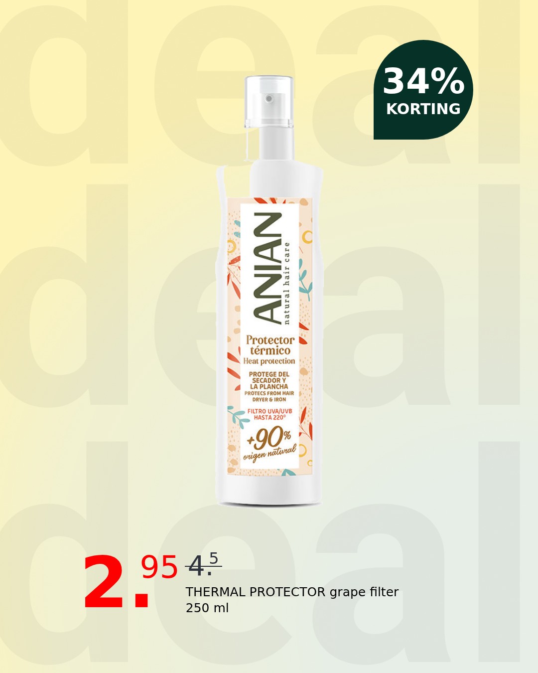 Shield your strands from heat damage with Anian’s THERMAL PROTECTOR grape filter. This advanced formula creates an invisible barrier, safeguarding your hair from the harsh effects of styling tools, ensuring vibrant health and a smooth finish with every use.