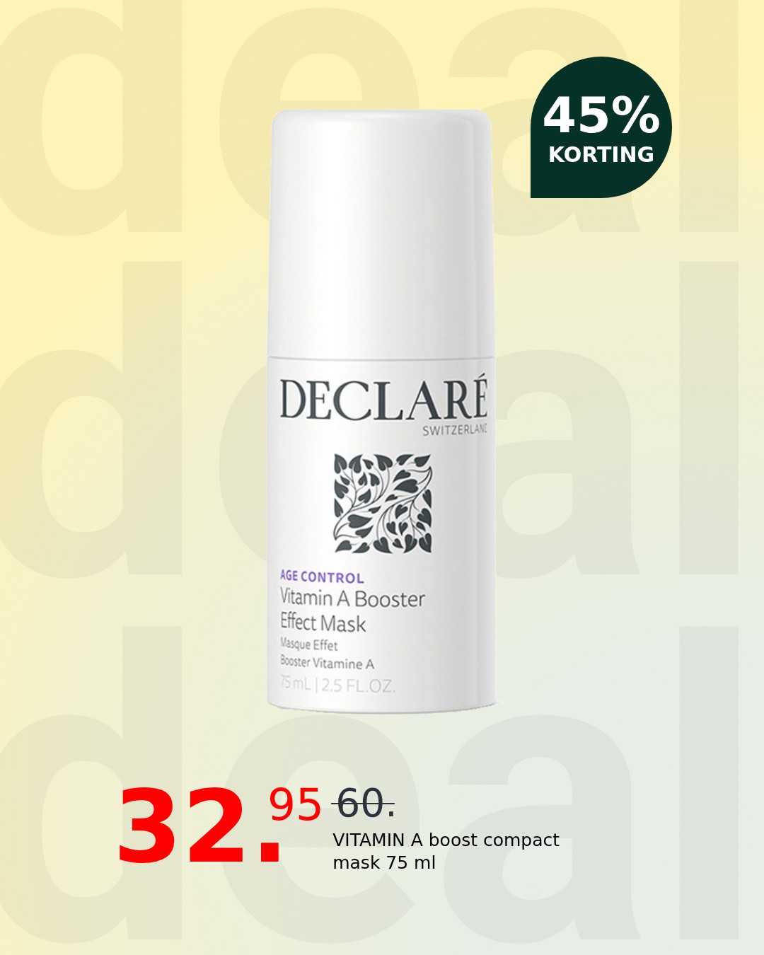 Unveil a visibly refreshed and revitalized complexion with the DeclarÉ VITAMIN A boost compact mask. This potent treatment works to deeply nourish and rejuvenate your skin, leaving it feeling smoother, firmer, and radiantly healthy. Experience a transformative boost that targets dullness and signs of fatigue for a truly luminous glow.